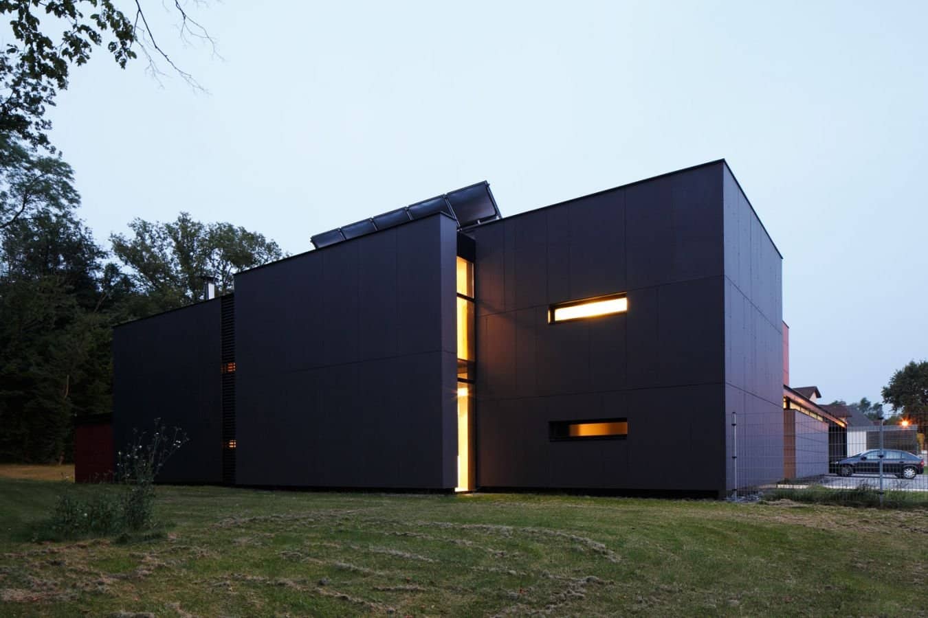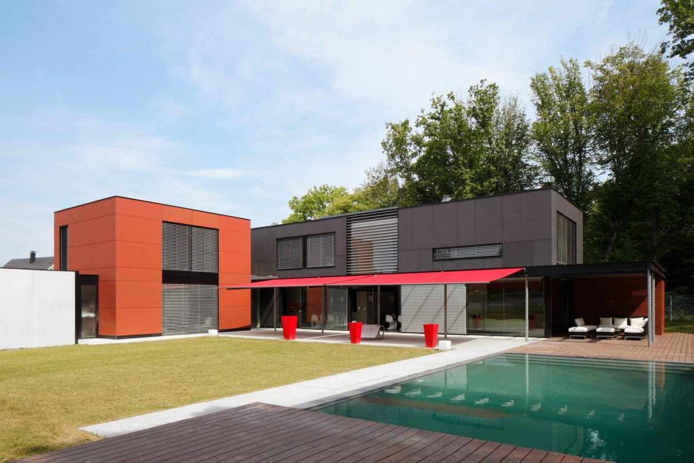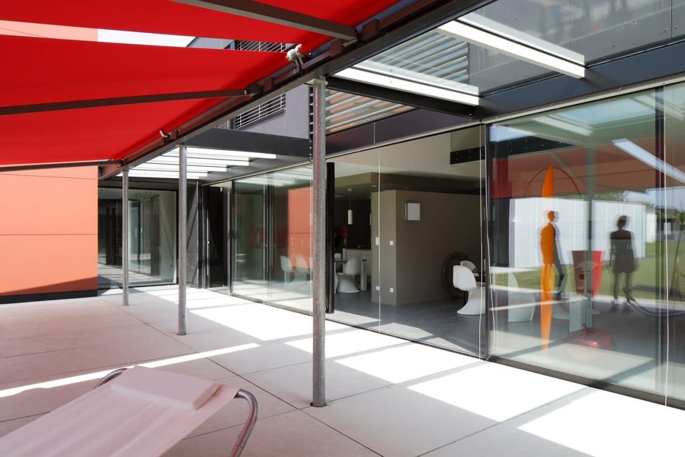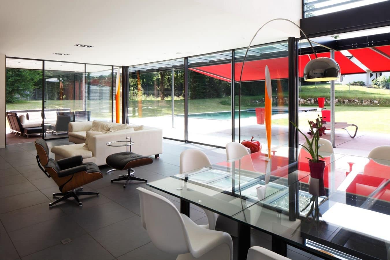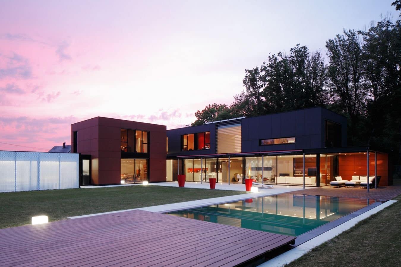 Ce projet de maison contemporaine en lisière de forêt se caractérise par ses formes pures et ses contrastes forts qui identifient les espaces intérieurs.