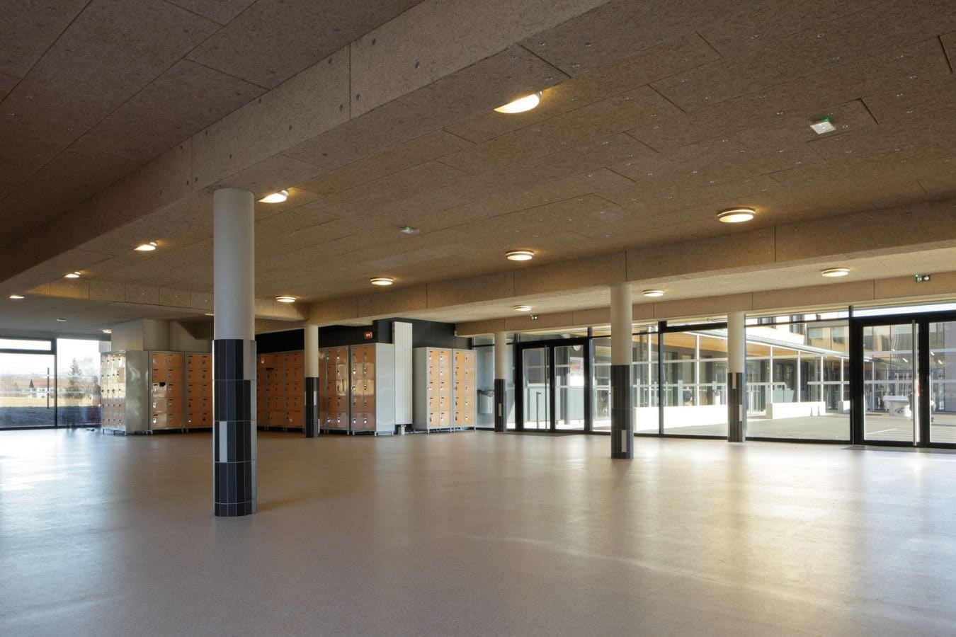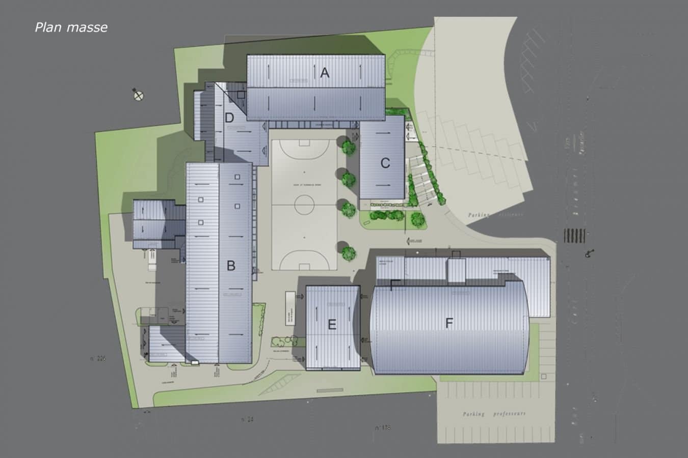 Construction de nouveaux pôles (hall d’entrée, administration, médico-social, CDI et préau) optimisés pour réorganiser de l’ensemble du collège + affirmation d’une nouvelle identité.