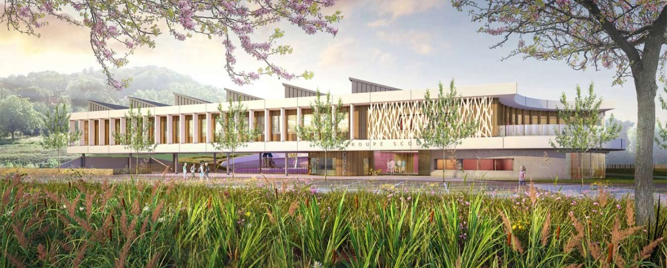 Au cœur d’un site remarquable au pied de la colline du Bicquey, à deux pas du centre-ville desservi par le tramway tout proche, le futur groupe scolaire des Vaites a vocation à s’inscrire en harmonie dans le paysage existant, le respectant et le valorisant.